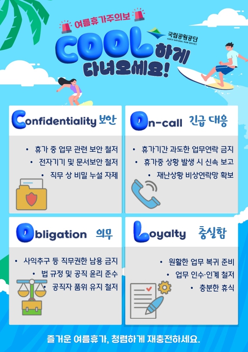 | 26 | [청렴휴가제] 즐거운 여름휴가, 청렴하게 재충전하세요. | 박수진 | 2024.07.12 | 781 | ![]() |