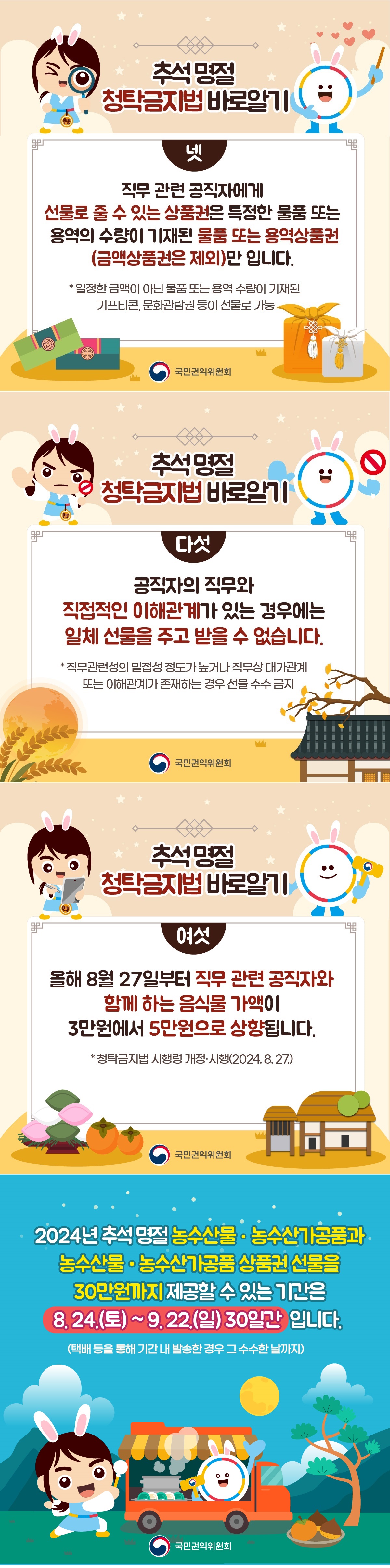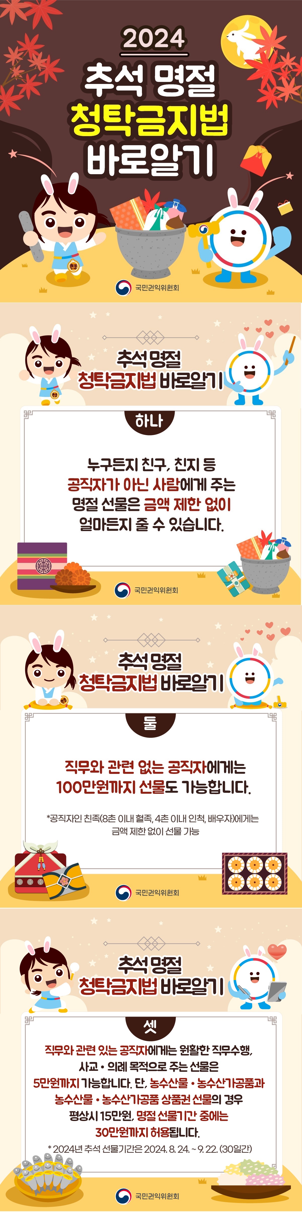 | 32 | 2024년 추석 명절 청탁금지법 바로 알려드립니다. | 박수진 | 2024.08.22 | 610 | ![]() ![]() |
